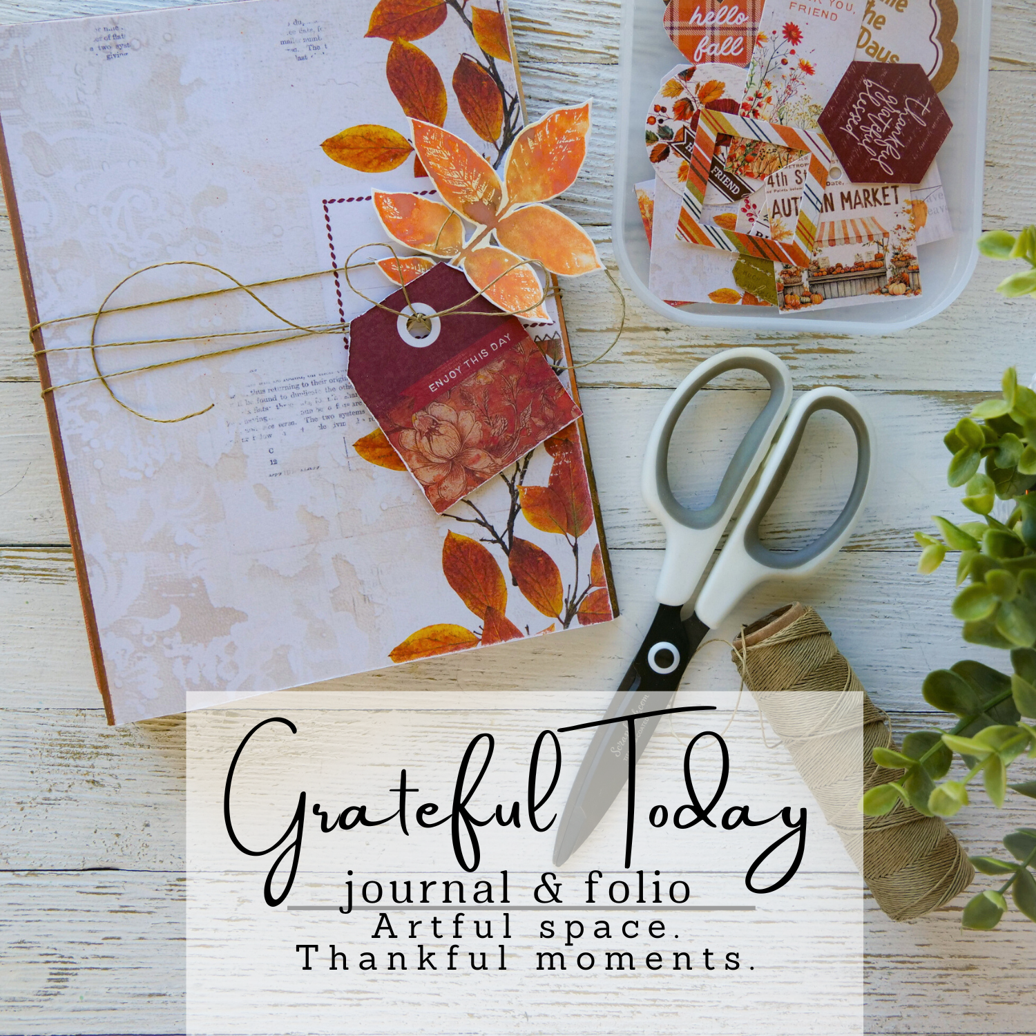 Grateful Today | Journal & Folio is a creative online course sharing how to build a handmade journal and folio insert to hold memories, reflections, and our favorite ways to create with paper. Learn to craft a lovely cover, add journaling and scrapbook pages, create embellished clusters, experiment with art journaling, and make pockets filled with tags and treasures—all while celebrating gratitude in everyday life.