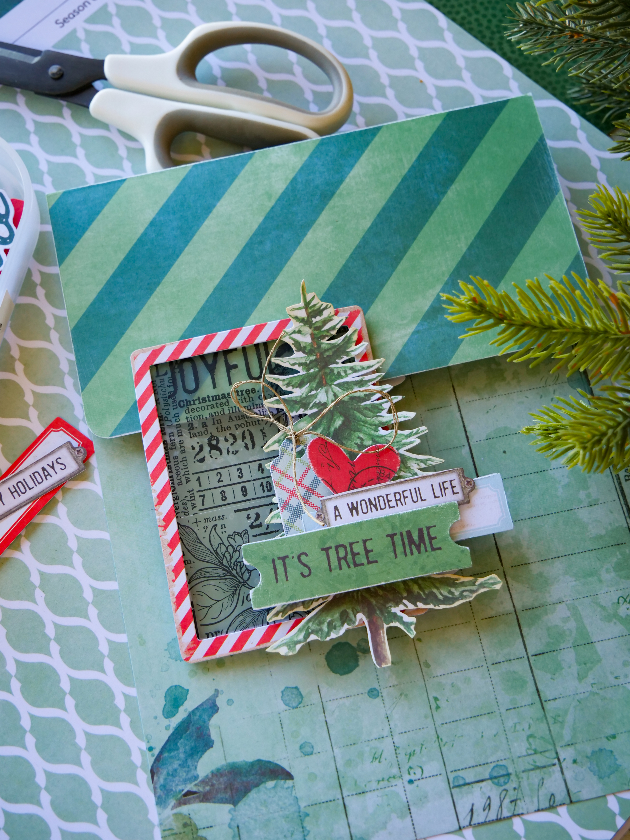 Some stories never fade — they grow with us, becoming traditions that define each December. In this lesson, we’ll celebrate the rituals that return year after year: your family tree hunt, the first cup of cocoa, a favorite playlist, or any custom that signals the season has begun. You’ll explore creative ways to document these moments through layered pockets, interactive details, and embellishments that echo the feeling of familiarity and joy. This page reminds us that traditions are living stories — always growing, always evergreen.