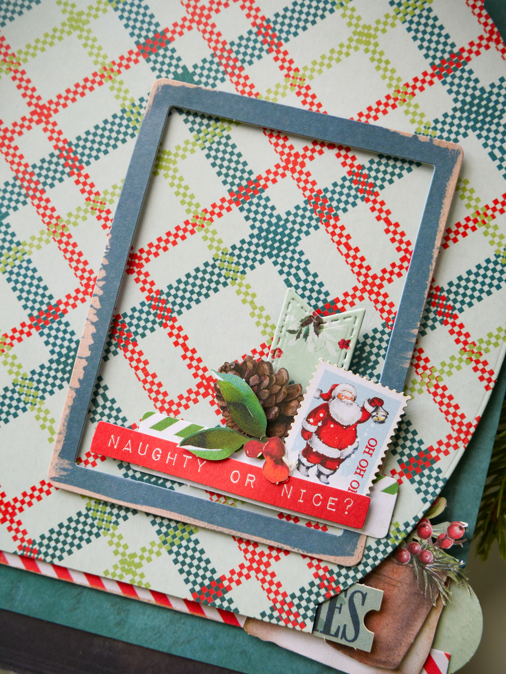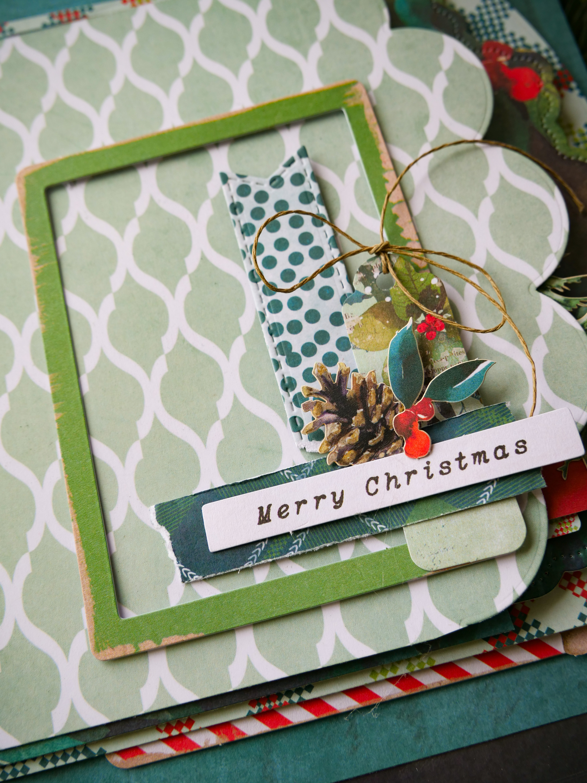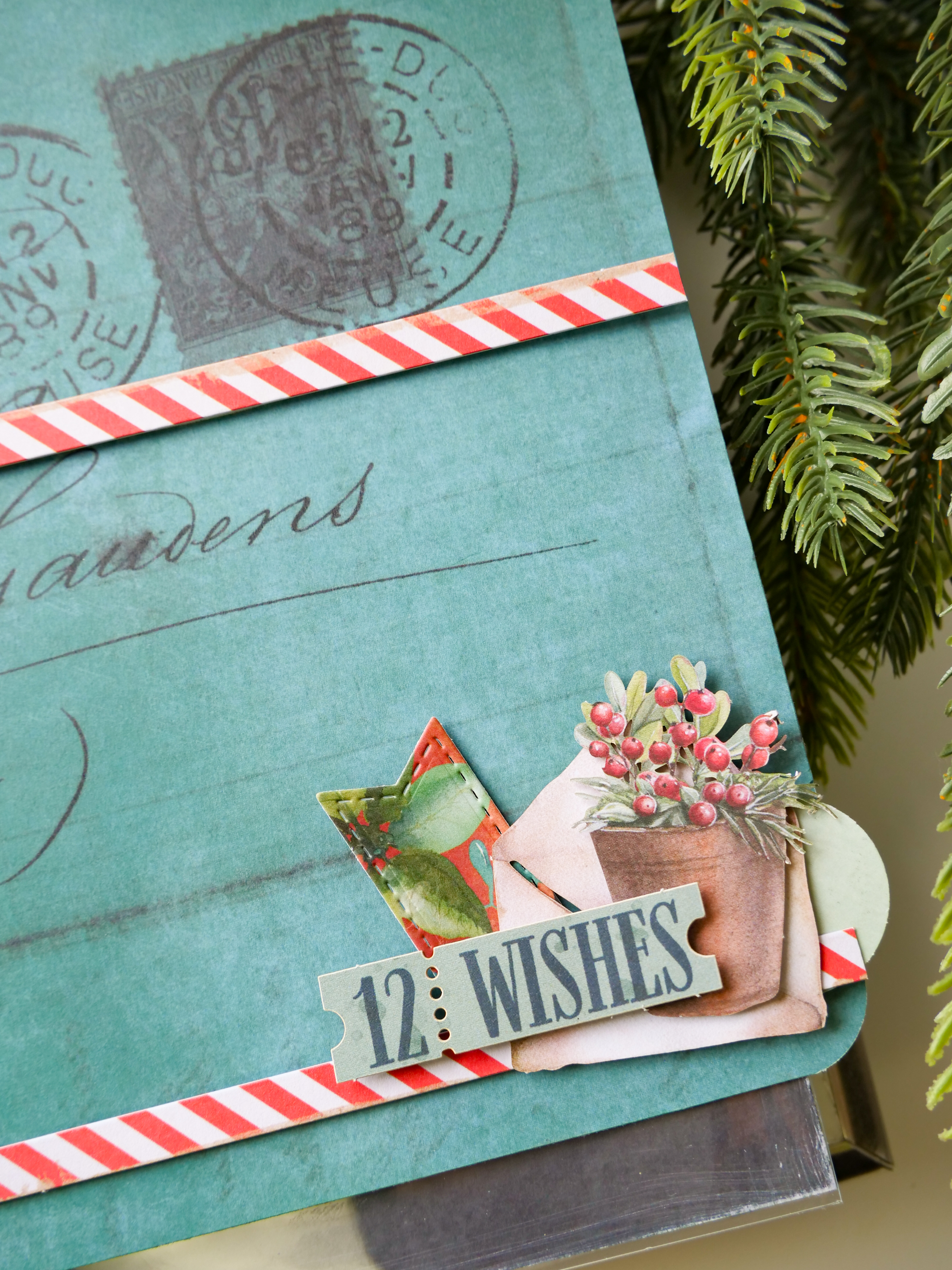 Gather and assemble: (see details with photos below) frame, label, sentiment, icon (star, tag, laser cut envelope, stamp) notched banner, botanical to create embellished clusters for each page.